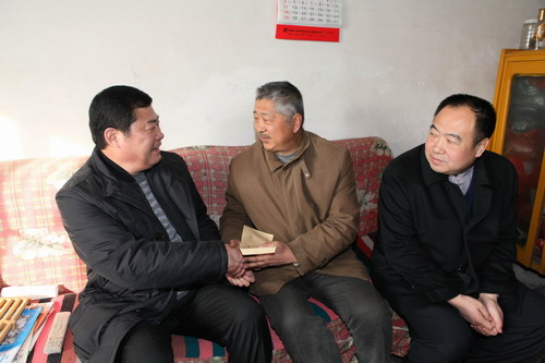 1月13日上午,陜西煤業(yè)化工集團(tuán)公司紀(jì)委書記吳衛(wèi)平一行在陜煤建司黨政負(fù)責(zé)人向新剛,工會、紀(jì)委等相關(guān)部門及雙龍社區(qū)主要負(fù)責(zé)人的陪同下看望慰問了公司困難職工劉玉蘭、韓銀山、向永亮三家,為他們送去了慰問金,囑咐他們好好生活,保重身體,有什么困難找工會幫助解決,并祝他們新年快樂。(王微)