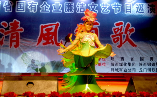 金風(fēng)十月,秋高氣爽,為了進(jìn)一步推進(jìn)國有企業(yè)廉政文化建設(shè),充分發(fā)揮廉政文化的滲透、啟發(fā)和感染作用。10月14日、15日,陜西省國有企業(yè)廉潔文藝節(jié)目《清風(fēng)頌歌》巡演團分別在陜煤化集團銅川礦業(yè)公司和韓城礦業(yè)公司演出。