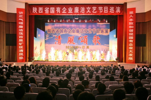 在14日、15日的巡演中,銅川礦業(yè)公司和韓城礦業(yè)公司的領(lǐng)導(dǎo)在演出晚會上致辭指出,省國資委精心組織的2010年廉潔文藝節(jié)目巡演開辟了推進(jìn)廉潔文化、弘揚廉潔主題的新形式,彰顯了國資委黨委加強廉政建設(shè)、振興國有企業(yè)的堅定信心。近年來,陜煤化集團基層單位按照省國資委和陜煤化集團的要求,堅持把反腐倡廉建設(shè)擺上重要位置,多層次、全方位構(gòu)建懲防體系,在做好技改達(dá)產(chǎn)、擴能增量、以精圖強、減人提效、強化管理的同時,先后開展了一系列廉政主題教育活動,努力在單位營造了風(fēng)清氣正、廉潔從業(yè)的良好氛圍,推動了礦區(qū)科學(xué)發(fā)展、安全發(fā)展、和諧發(fā)展。表示將以這次演出為契機,切實加強黨風(fēng)廉政建設(shè)和反腐敗工作,進(jìn)一步深化黨務(wù)公開,不斷把廉潔文化建設(shè)引向深入,并預(yù)祝演出圓滿成功。