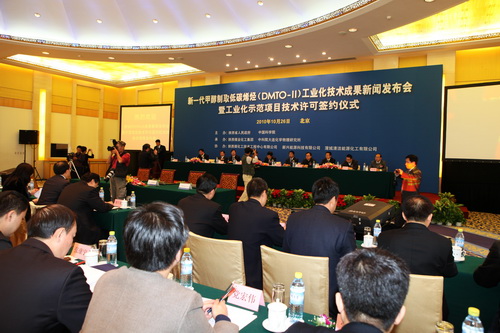 10月26日下午3時(shí),由陜西省人民政府和中國(guó)科學(xué)院聯(lián)合主辦,陜西煤業(yè)化工集團(tuán)公司和中科院大連化學(xué)物理研究所承辦的新一代甲醇制取低碳烯烴DMTO-II工業(yè)化技術(shù)成果新聞發(fā)布會(huì)在北京釣魚(yú)臺(tái)國(guó)賓館召開(kāi),展示研究雙方在發(fā)展自主創(chuàng)新技術(shù)方面的突出成就,促進(jìn)DMTO-II技術(shù)的市場(chǎng)推廣工作。會(huì)上還簽署了世界首套70萬(wàn)噸/年DMTO-II烯烴項(xiàng)目技術(shù)許可協(xié)議。