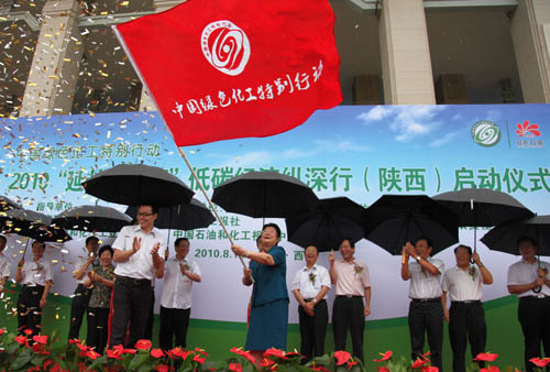 中國綠色化工特別行動――2010低碳經(jīng)濟(jì)縱深行大型采訪活動在順利結(jié)束寧夏、山西行后,14日在陜西正式啟動。全國人大常委會原副委員長顧秀蓮出席啟動儀式并向采訪團(tuán)授旗。陜西煤業(yè)化工集團(tuán)公司派出方隊(duì)出席了啟動儀式。