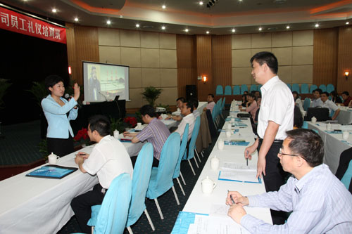 為進(jìn)一步提高廣大員工的禮貌禮儀、行為規(guī)范和服務(wù)意識(shí),提升公司形象和競(jìng)爭(zhēng)實(shí)力。5月27日,陜煤股份公司在雍村飯店舉辦了員工禮儀培訓(xùn)班,特邀西安華夏禮儀網(wǎng)高級(jí)禮儀培訓(xùn)師楊揚(yáng)主講。股份公司全體員工及集團(tuán)公司部分員工共計(jì)50余人參加了培訓(xùn)。