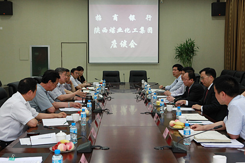 6月12日下午,招商銀行總行副行長(zhǎng)唐志宏、總行公司銀行部總經(jīng)理張建、西安分行行長(zhǎng)王冰劍等一行六人來(lái)到陜西煤業(yè)化工集團(tuán)公司,與集團(tuán)公司董事長(zhǎng)、黨委書(shū)記華煒,總經(jīng)理高仰才及規(guī)劃委、財(cái)務(wù)資產(chǎn)部、投資公司負(fù)責(zé)人進(jìn)行了座談。