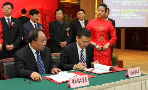 陜煤化集團(tuán)神木煤化工產(chǎn)業(yè)公司代表與上海勝幫煤化工技術(shù)公司代表簽約協(xié)議