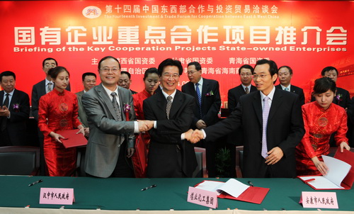 第十四屆中國(guó)東西部合作與投資貿(mào)易洽談會(huì),是陜西和西部省市擴(kuò)大對(duì)外開(kāi)放、拓展交流合作、推動(dòng)國(guó)有企業(yè)外向發(fā)展的一項(xiàng)重要舉措。推介會(huì)上,陜西煤業(yè)化工集團(tuán)及集團(tuán)下屬單位神木煤化工產(chǎn)業(yè)公司和蒲城清潔能源公司分別與漢中市政府、安康市政府、江蘇煤化工程研究設(shè)計(jì)院、上海勝幫煤化工技術(shù)公司和美國(guó)空氣產(chǎn)品(中國(guó))投資有限責(zé)任公司5家企業(yè)代表在煤化工、煉油、物流服務(wù)、基礎(chǔ)設(shè)施、環(huán)保和節(jié)能等領(lǐng)域項(xiàng)目上簽約了合作協(xié)議。