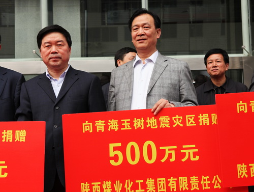 青海玉樹強烈地震發(fā)生后,災情深深牽動著陜西煤業(yè)化工集團公司9萬名員工的心,在4月19日下午陜西省國資委舉行的國有企業(yè)向玉樹災區(qū)捐款儀式上,集團公司向災區(qū)捐款500萬元,為地震災區(qū)送去了廣大干部職工的祝福和愛心。