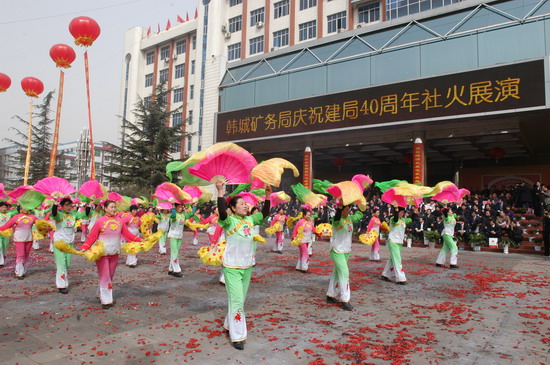 參加慶祝大會的與會人員興致勃勃地觀看了韓城礦務(wù)局建局40周年慶祝活動的社火展演、中國煤炭文工團(tuán)演出晚會及圖片展覽、電視專題片、書法繪畫攝影展等。(徐醒民/文 陳鳳鳴/圖)