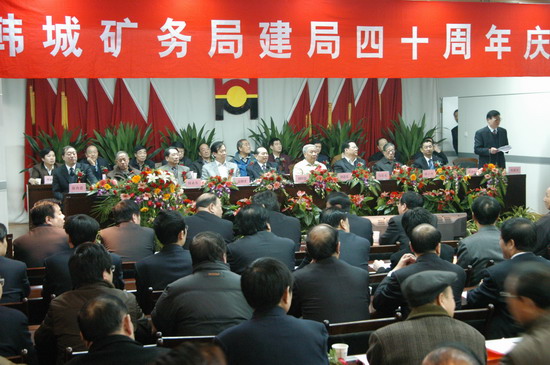 韓城市市長張建中代表韓城市市委、市政府對韓城礦務(wù)局建局40周年表示熱烈的祝賀。并用4個(gè)“功不可沒”充分肯定了韓城礦務(wù)局40年來為韓城經(jīng)濟(jì)社會發(fā)展作出的重要貢獻(xiàn),希望韓城礦務(wù)局在推動韓城經(jīng)濟(jì)發(fā)展、城市建設(shè)、和諧穩(wěn)定和精神文明建設(shè)上再作新貢獻(xiàn)。