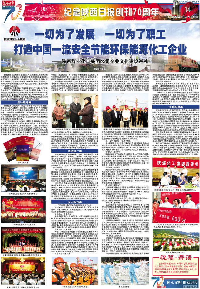 站在新的歷史起點,陜西煤業(yè)化工集團將堅持貫徹落實科學發(fā)展觀,解放思想,與時俱進,繼續(xù)拓展“一切為了發(fā)展,一切為了職工”、“銳意進取,追求卓越”、“造福員工、奉獻社會”為核心的品牌文化體系,加快建設(shè)符合“打造中國一流安全節(jié)能環(huán)保能源化工企業(yè)”的發(fā)展愿景、具有獨特個性和豐富內(nèi)涵的企業(yè)文化,為集團公司的持續(xù)快速發(fā)展提供源源不斷的智力和文化支持。