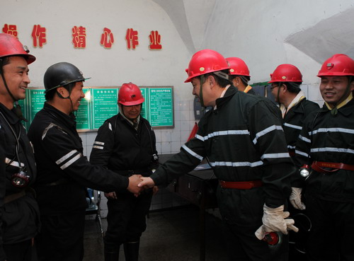 隨后,華煒又來到王村煤礦,深入井下檢查指導(dǎo)安全生產(chǎn)工作。在井下,華煒對陪同的礦領(lǐng)導(dǎo)說,煤礦是個(gè)高危的行業(yè),要把安全工作放在首位,一定要在保證安全的情況下生產(chǎn),只有保證安全才能取得最大的效益。在井下中央變電所,華煒和每個(gè)職工親切的握手問候,詳細(xì)詢問了他們的收入和生活情況,叮囑他們要嚴(yán)守操作規(guī)程,確保安全生產(chǎn)。 (韓宏偉何武宏)