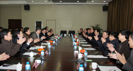 1月27日下午,省委常委、延安市委書記李希和延安市委副書記、市長(zhǎng)陳強(qiáng)等延安市領(lǐng)導(dǎo)和延安市有關(guān)政府部門負(fù)責(zé)人一行來到陜西煤業(yè)化工集團(tuán)走訪座談,集團(tuán)公司領(lǐng)導(dǎo)華煒、高仰才、楊照乾、尤西蒂、尚建選、吳繼亮和有關(guān)部門負(fù)責(zé)人熱情接待了延安市領(lǐng)導(dǎo)一行。