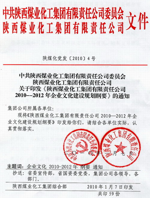——陜煤化集團(tuán)黨政聯(lián)合印發(fā)《2010-2012年企業(yè)文化建設(shè)規(guī)劃綱要》