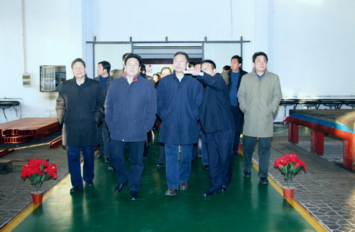 集團(tuán)公司副總經(jīng)理閔龍及有關(guān)專(zhuān)家在副局長(zhǎng)薛衛(wèi)的陪同下到三通公司機(jī)加車(chē)間實(shí)地參觀。