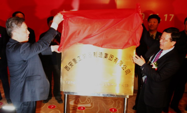 副省長(zhǎng)吳登昌和陜西煤業(yè)化工集團(tuán)董事長(zhǎng)、黨委書(shū)記華煒為西安重工裝備制造集團(tuán)有限公司揭牌