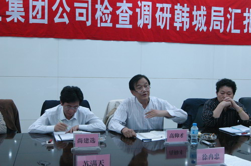10月28日,陜西煤業(yè)化工集團公司總經(jīng)理高仰才,副總經(jīng)理尚建選、朱周歧等一行8人到韓城礦務(wù)局調(diào)研指導(dǎo)工作。韓城局領(lǐng)導(dǎo)班子全體成員,局副總及財務(wù)、勞資、計劃、生產(chǎn)、通風(fēng)等有關(guān)處室負責(zé)人參加匯報會。