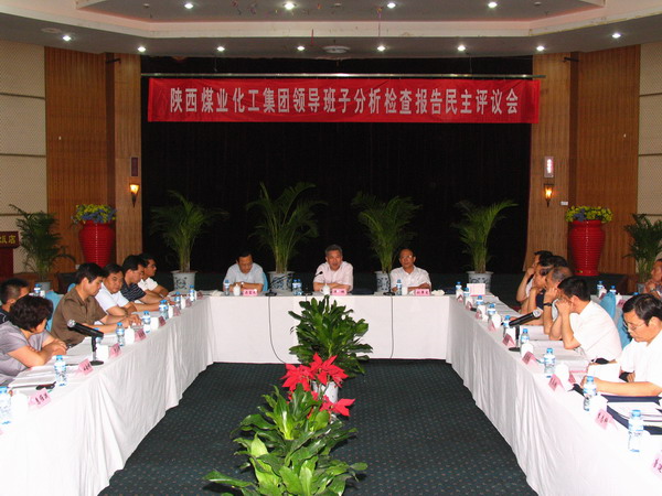 7月18日上午,陜西煤業(yè)化工集團公司在雍村飯店召開領(lǐng)導(dǎo)班子分析檢查報告民主評議會,認真聽取各方面對集團公司領(lǐng)導(dǎo)班子分析檢查報告的意見和建議。會議同時總結(jié)了集團公司深入學習實踐科學發(fā)展觀活動第二階段的工作,部署了第三階段的工作。