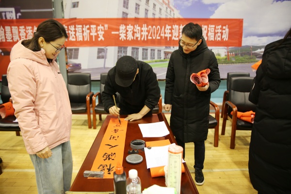 迎新春萬(wàn)福到,喜氣洋洋過(guò)新年。伴隨著新春佳節(jié)的到來(lái),該礦文體活動(dòng)悄悄拉開(kāi)了序幕,在“迎新春、送萬(wàn)福、進(jìn)萬(wàn)家”活動(dòng)現(xiàn)場(chǎng),來(lái)自機(jī)關(guān)部室和生產(chǎn)區(qū)隊(duì)的書(shū)法家們攜帶“文房四寶”,在紅艷艷的春聯(lián)上揮毫潑墨,洋溢瀟灑地寫(xiě)下了各式各樣喜氣滿(mǎn)滿(mǎn)的“?!弊?,表達(dá)著職工群眾對(duì)新一年美好生活的向往。