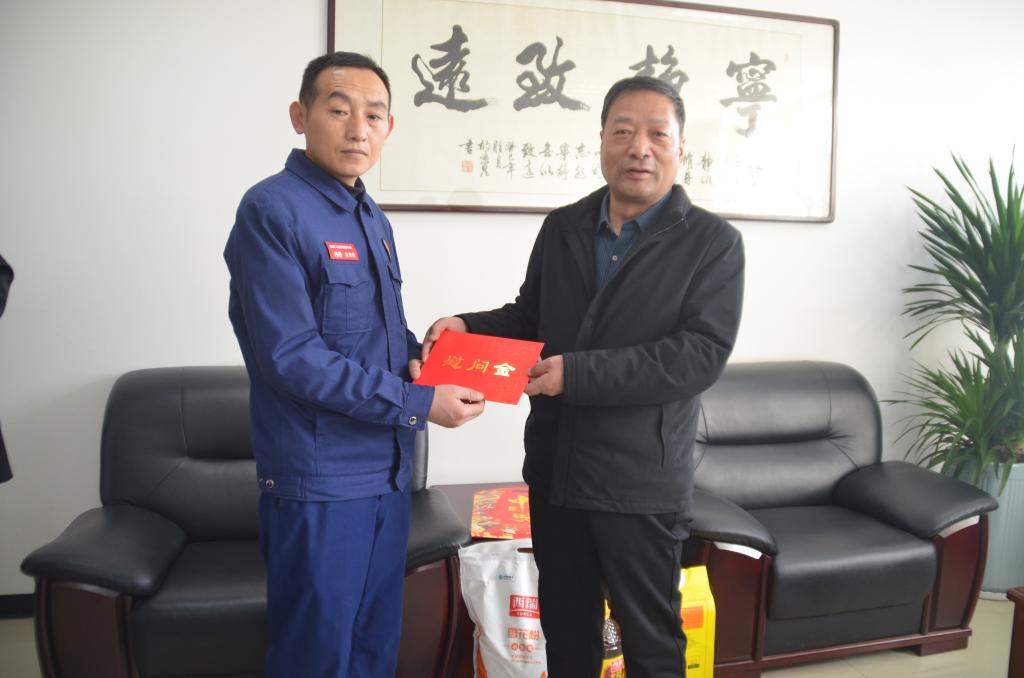 1月15日,公司黨委副書記、董事、總經(jīng)理雷鐵山深入柴家溝井看望慰問困難黨員王衛(wèi)云、困難職工馬錦耀,為他們送去組織的關(guān)懷與溫暖。