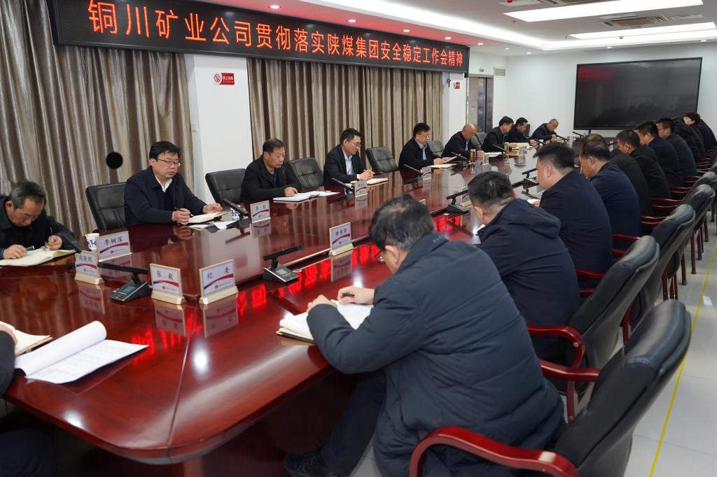 1月22日上午,公司在信息調(diào)度中心四樓會議室召開專題會議,認(rèn)真學(xué)習(xí)貫徹集團安全穩(wěn)定工作視頻會、陜西煤業(yè)煤礦救護工作座談會精神,按照陜煤集團、陜西煤業(yè)部署要求,緊密結(jié)合公司實際,就抓好春節(jié)和當(dāng)前礦區(qū)安全穩(wěn)定工作進行安排部署。公司領(lǐng)導(dǎo)班子成員、機關(guān)部室負(fù)責(zé)人參加會議。