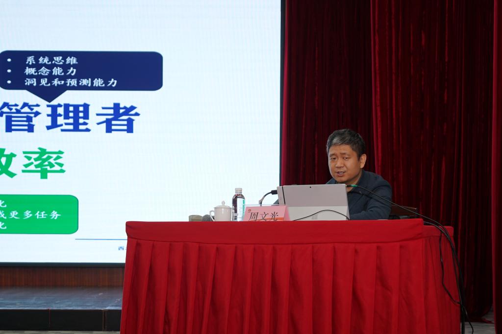 授課中,周文光主任聚焦當(dāng)下AI 發(fā)展的蓬勃趨勢(shì),深入剖析了人工智能的特點(diǎn)、功能,如何重塑管理模式,提升工作效能效率和融入日常生活,指出其核心優(yōu)勢(shì)在于海量的數(shù)據(jù)儲(chǔ)備、繁多的參數(shù)配置,強(qiáng)大的多模態(tài)信息處理能力,是助力工作的全能助手,并通過(guò)對(duì)比當(dāng)下主流的大模型,客觀分析各自的優(yōu)劣勢(shì),管理者在選擇和應(yīng)用過(guò)程中要掌握的方法,以及如何將人工智能應(yīng)用到?jīng)Q策和管理中的舉措。