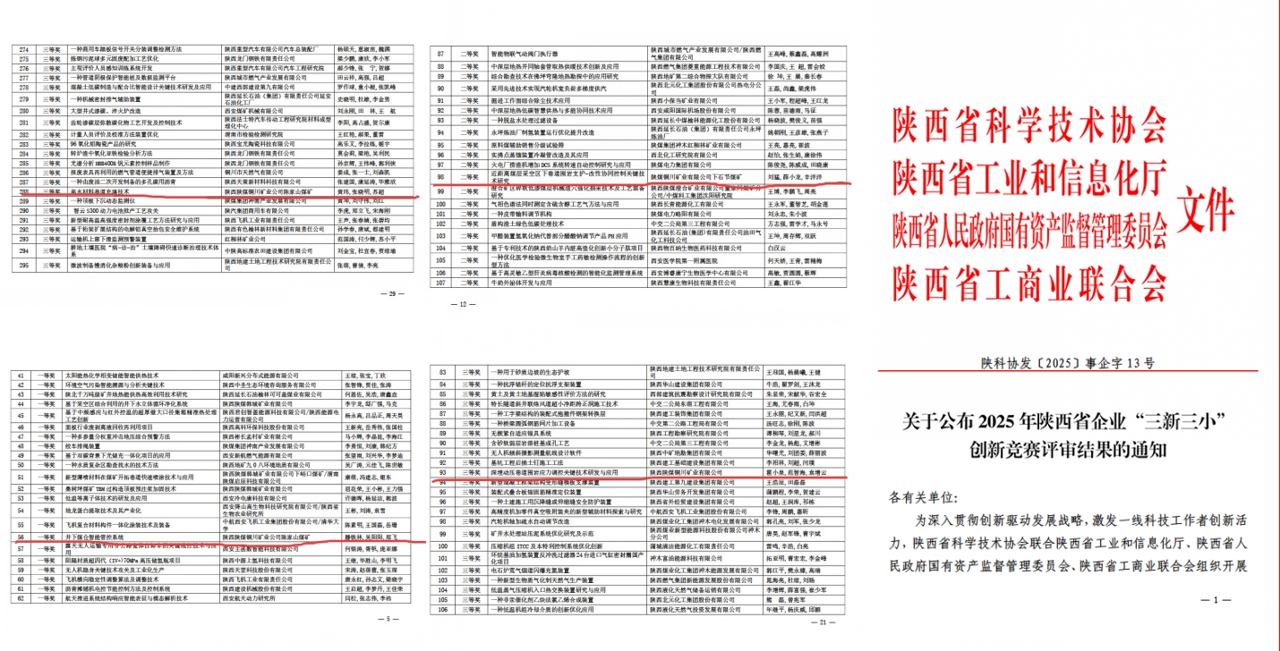 近日,陜西省科學(xué)技術(shù)協(xié)會發(fā)布《2025年陜西省企業(yè)“三新三小”創(chuàng)新競賽結(jié)果公示》,公司四項(xiàng)成果分獲創(chuàng)新競賽一二三等獎。