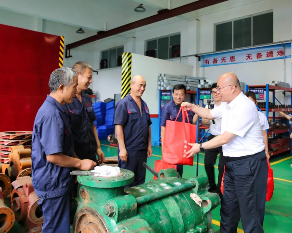 為切實保障職工身心健康,做好防暑降溫工作,連日來,公司領(lǐng)導(dǎo)班子成員懷著對職工的牽掛與關(guān)愛,分赴各基層單位,進(jìn)廠區(qū)、入車間、到班組,看望慰問奮戰(zhàn)在生產(chǎn)一線的干部職工,將公司黨政的關(guān)懷與牽掛送到干部職工的心坎上。