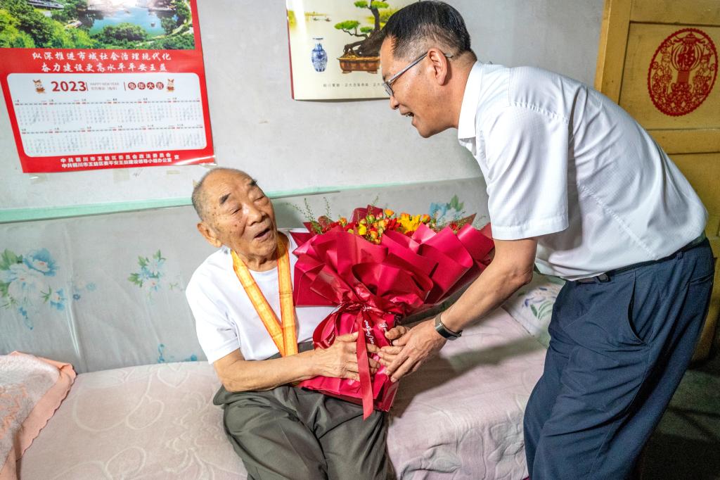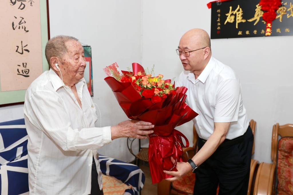 8月22日,公司黨委書(shū)記、董事長(zhǎng)雷鐵山深入居住在礦務(wù)局干休所的抗戰(zhàn)老兵、公司桃園煤礦退休職工王忠家中,看望慰問(wèn)了今年已98歲的老人家,并為他佩戴了“中國(guó)人民抗日戰(zhàn)爭(zhēng)勝利80周年”紀(jì)念章,深情表達(dá)了對(duì)抗戰(zhàn)英雄的崇高敬意和關(guān)懷慰問(wèn)。