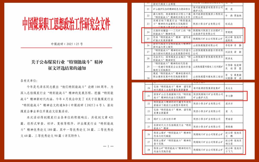近日,從中國煤炭政研會傳來喜訊,公司2部作品分別榮獲煤炭行業(yè)第五屆“華電煤業(yè)杯”微黨課大賽一等獎、三等獎,6篇論文在煤炭行業(yè)“特別能戰(zhàn)斗”精神主題征文活動中分獲優(yōu)秀論文二、三等獎。