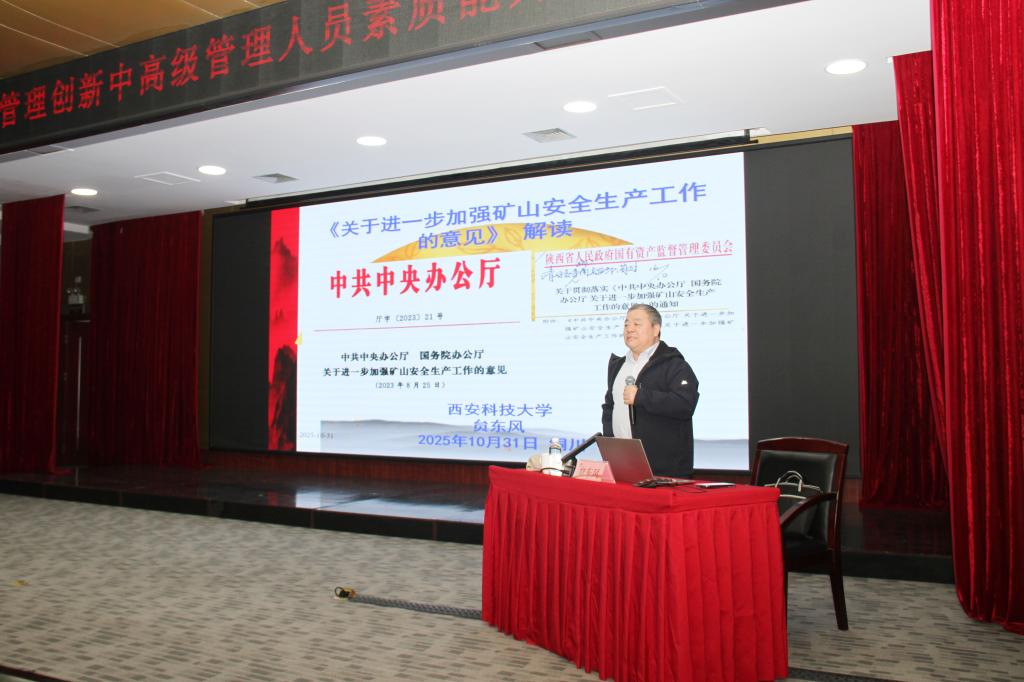 贠東風(fēng)教授圍繞兩辦《意見》《八條硬措施》及安全生產(chǎn)治本攻堅標(biāo)準(zhǔn)展開解讀,結(jié)合礦山領(lǐng)域安全生產(chǎn)工作實際,梳理政策核心要求,剖析防范遏制礦山重特大事故的關(guān)鍵舉措,明確企業(yè)落實安全生產(chǎn)責(zé)任的重點方向,為參訓(xùn)人員精準(zhǔn)把握政策內(nèi)涵、推動政策落地提供指導(dǎo)。并聚焦煤礦安全生產(chǎn)與綠色標(biāo)準(zhǔn)協(xié)同機制,深入講解二者融合的重要意義與實踐路徑,闡述如何在保障安全生產(chǎn)的同時,推進綠色礦山建設(shè),助力企業(yè)實現(xiàn)安全與綠色發(fā)展的雙贏,為公司中高級管理人員優(yōu)化管理思路、提升統(tǒng)籌能力提供了專業(yè)支撐。