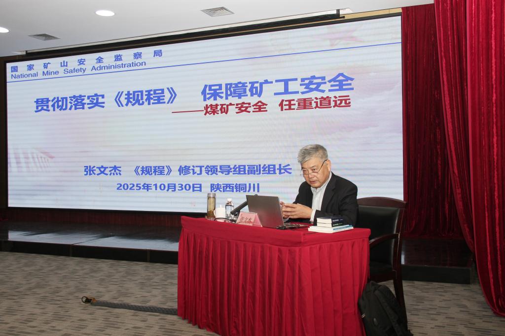張文杰以《貫徹落實<規(guī)程>保障礦工安全》為題,對新版《規(guī)程》進行深入解讀,講述了《規(guī)程》修訂是緊密貼合當(dāng)下煤礦安全生產(chǎn)實際需求、順應(yīng)行業(yè)發(fā)展的必要舉動;從修訂背景、法律地位、總則要點到重點條款等方面,重點講解了煤礦安全管理、煤礦安全監(jiān)管、煤礦地質(zhì)和隱蔽致災(zāi)因素普查,以及規(guī)范新技術(shù)、新工藝、新設(shè)備應(yīng)用等關(guān)鍵環(huán)節(jié)的安全規(guī)定,系統(tǒng)闡述了《規(guī)程》對煤礦安全生產(chǎn)的指導(dǎo)意義。