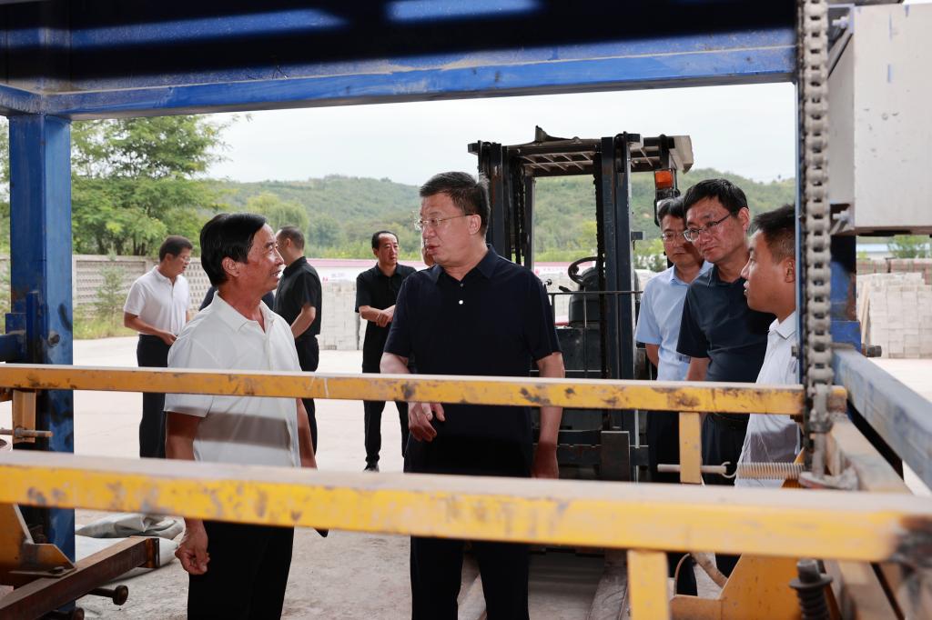 路根奎一行到達東王村后,與紅土鎮(zhèn)黨委書記路俊杰,黨委副書記、鎮(zhèn)長郭濤就助力鄉(xiāng)村振興工作進行了交流,并實地察看了公司幫扶東王村興建的免燒磚廠廠區(qū)建設和生產(chǎn)情況,聽取了該村負責同志及公司駐村干部就磚廠設備升級后的生產(chǎn)運行情況、生產(chǎn)規(guī)模、產(chǎn)品品類、市場銷路等情況的工作匯報。
