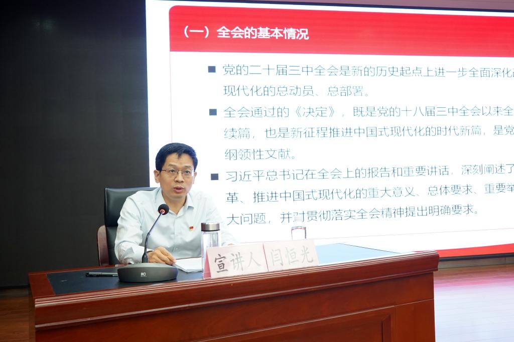 宣講中,閆恒光從“全會(huì)的基本情況、深入學(xué)習(xí)領(lǐng)會(huì)習(xí)近平總書(shū)記在全會(huì)上的重要講話(huà)精神、全面準(zhǔn)確理解《決定》提出的進(jìn)一步全面深化改革重大舉措、全力以赴抓好全會(huì)精神貫徹落實(shí)”四個(gè)方面,對(duì)黨的二十屆三中全會(huì)的重大意義、豐富內(nèi)涵、精髓要義、實(shí)踐要求進(jìn)行了深入解讀,并緊密結(jié)合全會(huì)精神,對(duì)深入推進(jìn)黨風(fēng)廉政建設(shè)和反腐敗斗爭(zhēng)及紀(jì)檢監(jiān)察體制改革的背景意義、重大舉措、重要內(nèi)容進(jìn)行了細(xì)致講解,對(duì)集團(tuán)改革發(fā)展的重大決策部署和集團(tuán)今年以來(lái)的重點(diǎn)工作、重大項(xiàng)目推進(jìn)情況進(jìn)行了系統(tǒng)介紹,要求公司上下切實(shí)把學(xué)習(xí)貫徹全會(huì)精神作為當(dāng)前和今后一個(gè)時(shí)期的重大政治任務(wù),切實(shí)在深學(xué)細(xì)悟、入腦入心上下功夫,在宣傳宣講、講深講透上下功夫,在落地落細(xì)、見(jiàn)行見(jiàn)效上下功夫,在從嚴(yán)從緊、抓常抓長(zhǎng)上下功夫,進(jìn)一步把思想和行動(dòng)統(tǒng)一到全會(huì)精神上來(lái),統(tǒng)一到服務(wù)推動(dòng)集團(tuán)改革發(fā)展大局上來(lái),緊密結(jié)合企業(yè)實(shí)際,切實(shí)抓好安全生產(chǎn)、經(jīng)營(yíng)管理、改革發(fā)展、全面從嚴(yán)治黨、黨風(fēng)廉政建設(shè)等工作,以全面深化改革推動(dòng)老礦區(qū)轉(zhuǎn)型升級(jí),為陜煤集團(tuán)高質(zhì)量發(fā)展、創(chuàng)建世界一流企業(yè)貢獻(xiàn)新的更大力量。
