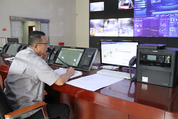 在陳家山礦調(diào)度指揮中心,擔任了20多年調(diào)度員的張小剛緊盯著大屏幕,有條不紊地下達著生產(chǎn)指令,五十塊屏幕實時監(jiān)控著井下工作面、變電所、大巷、人車場以及地面重點區(qū)域等場所的安全生產(chǎn)情況。問生產(chǎn)、查值班、詢情況,調(diào)度的電話一個接一個,雖然工作繁瑣,但張小剛沉著穩(wěn)重,每項工作都處理得井井有條。