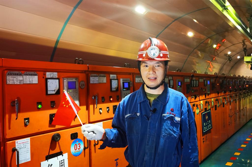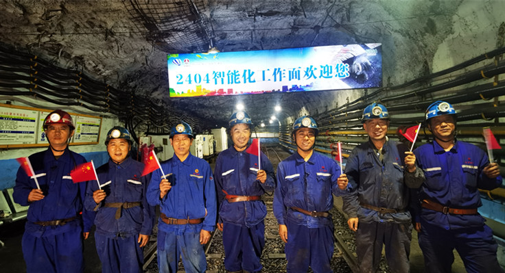 在玉華礦井下2404智能化綜采集控中心,綜采隊生產(chǎn)三班在即將進入工作面之際,跟班干部郝巖叫住了大家,“國慶節(jié)到了,我們在千尺井下也與國旗合個影吧”,一面面國旗在巷道里迎風飄揚,鏡頭里綻放一張張笑臉,“智能生產(chǎn)、開采光明,向祖國獻禮!”,話音剛落,擴音器里傳來中班準備開機的指令。隨著班組離開,膠帶傳動,滾滾烏金奔流而出。