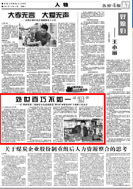 本報訊在陜西煤業(yè)化工集團(tuán)銅川礦業(yè)公司陳家山煤礦寨子溝職工家屬區(qū),有一家叫“宇豐商行”的煙酒副食品商店,周圍十里八鄉(xiāng)的居民都喜歡到這家商店買東西,大家都知道這家商店的老板張金合以誠信聞名,是個實誠人。張金合今年49歲,中等身材,戴著一副高度數(shù)的眼鏡。在創(chuàng)業(yè)的14年里,他先后榮獲“銅川礦務(wù)局十大再就業(yè)明星”、“銅川市十大再就業(yè)明星”、“銅川市消費者信得過個體戶”、“銅川市誠信納稅戶”、“銅川市誠實守信道德模范”等榮譽稱號。10月28日,張金合再次被省委宣傳部、省文明辦、省總工會、共青團(tuán)陜西省委、省婦聯(lián)授予“陜西省誠實守信道德模范”殊榮。