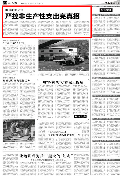 本報訊銅川礦業(yè)公司牢固樹立過“緊日子”管理思想,深層次、常態(tài)化推進“增收節(jié)支”工作,保持企業(yè)健康持續(xù)發(fā)展。
