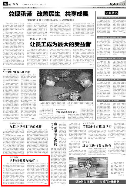 近年來(lái),銅川下石節(jié)煤礦積極轉(zhuǎn)變?cè)鲩L(zhǎng)方式,以科技創(chuàng)新為引領(lǐng),大力實(shí)施節(jié)能減排和綜合利用項(xiàng)目,全力推進(jìn)綠色礦山建設(shè)。