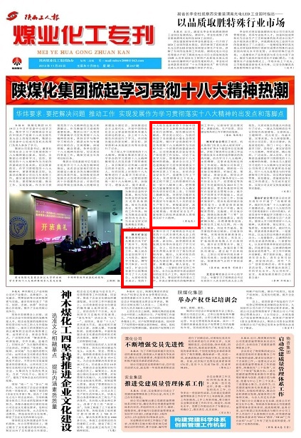 銅川礦業(yè)公司黨政領(lǐng)導(dǎo)這幾天都是白天下礦廠到井下、現(xiàn)場(chǎng)檢查安全生產(chǎn)等工作,晚上到辦公室加班學(xué)習(xí)十八大報(bào)告,摘抄學(xué)習(xí)筆記,撰寫學(xué)習(xí)體會(huì)。11月14日,礦業(yè)公司黨委中心組集體學(xué)習(xí)了十八大報(bào)告,大家紛紛發(fā)言表示:黨的十八大報(bào)告是新形勢(shì)下奪取中國(guó)特色社會(huì)主義新勝利的政治宣言和行動(dòng)綱領(lǐng)。報(bào)告順應(yīng)時(shí)代潮流,符合黨心民心,為我們描繪了全面建成小康社會(huì)的宏偉藍(lán)圖。銅川礦業(yè)黨政把學(xué)習(xí)宣傳貫徹十八大精神作為當(dāng)前和今后一個(gè)時(shí)期的首要政治任務(wù),公司黨政聯(lián)系企業(yè)安全生產(chǎn)和經(jīng)營(yíng)工作實(shí)際,討論了認(rèn)真學(xué)習(xí)好、貫徹落實(shí)好十八大精神的措施,要求全公司上下迅速掀起學(xué)習(xí)宣傳貫徹落實(shí)十八大精神的熱潮,切實(shí)在領(lǐng)會(huì)精神實(shí)質(zhì)上下功夫,在結(jié)合企業(yè)安全生產(chǎn)、黨建等工作上下功夫,在貫徹落實(shí)上下功夫,真正把干部工人的思想和行動(dòng)統(tǒng)一到十八精神上來,把智慧和力量凝聚到實(shí)現(xiàn)十八大確定的各項(xiàng)目標(biāo)任務(wù)上來,引導(dǎo)職工腳踏實(shí)地,盡責(zé)盡力做好本職工作,采取切實(shí)措施善始善終搞好今年最后幾十天的安全生產(chǎn)等工作,積極謀劃好、準(zhǔn)備好完成明年各項(xiàng)工作任務(wù)的過硬措施,用搞好安全生產(chǎn)、富裕職工的優(yōu)異成績(jī)深入貫徹落實(shí)好十八精神。