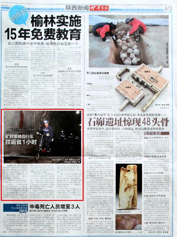 礦井下騎自行車推行近3個(gè)月來,深受一線職工歡迎。下石節(jié)煤礦黨委書記李國壁稱,“井下自行車”的做法還將在井下條件較好的地段繼續(xù)推行。
