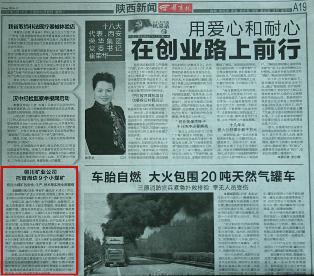 銅川礦業(yè)公司托管周邊9個(gè)小煤礦