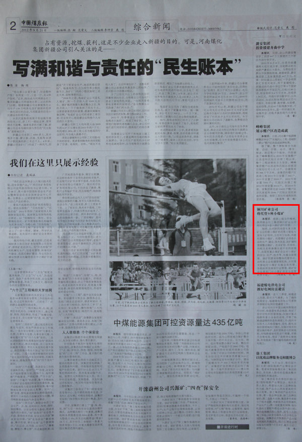 中國(guó)煤炭報(bào) 2012年9月21日 第二版