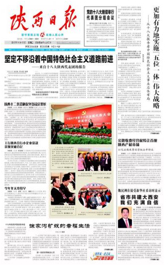 陜西日?qǐng)?bào) 2012年11月13日 頭版