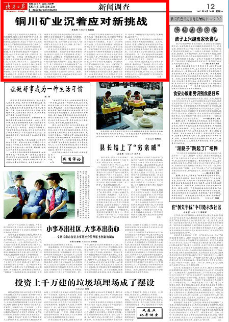 陜西日?qǐng)?bào) 2012年8月20日 新聞?wù){(diào)查版頭條