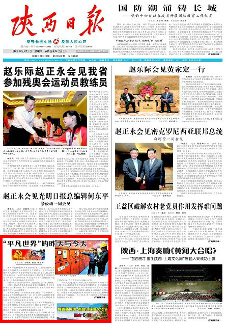 陜西日?qǐng)?bào) 2012年9月15日 頭版