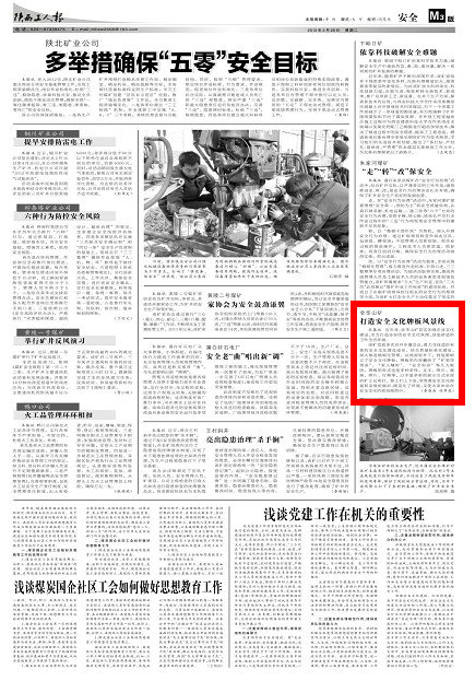 該礦黨政多次召開專題會(huì)議,著力尋找適時(shí)有效的安全文化建設(shè)途徑。結(jié)合質(zhì)量標(biāo)準(zhǔn)化建設(shè),深入推進(jìn)精細(xì)化管理,從地面到井下,到處都樹立了安全文化牌板,牌板的內(nèi)容囊括了“礦領(lǐng)導(dǎo)寄語”、“家人囑咐”、“安全標(biāo)語”等幾大板塊,牌板的形式也是多種多樣,文字、圖片、漫畫、照片、燈箱等,以豐富多彩的展示方式呈現(xiàn)給礦工兄弟們。職工們上下班,欣賞著安全文化圖展和親情祝福語,既美化了環(huán)境,又使大家沐浴在安全文化的和風(fēng)細(xì)雨中。