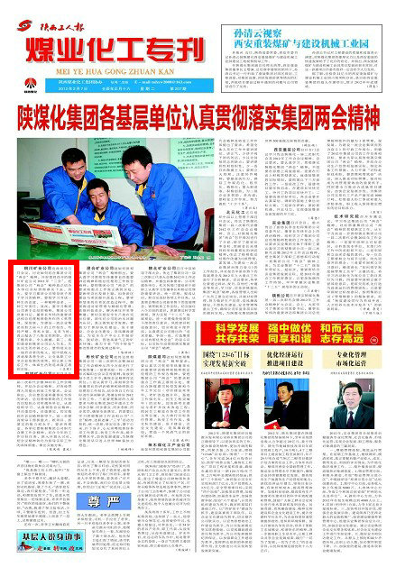 陜西工人報 2012年2月7日 煤化一版