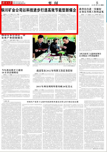 本報訊依靠科技進步讓銅川礦業(yè)公司插上了高效、節(jié)能的翅膀,去年,該公司完成節(jié)能2150噸標煤,萬元產(chǎn)值能耗下降7.6%,超額完成了節(jié)能減排任務。