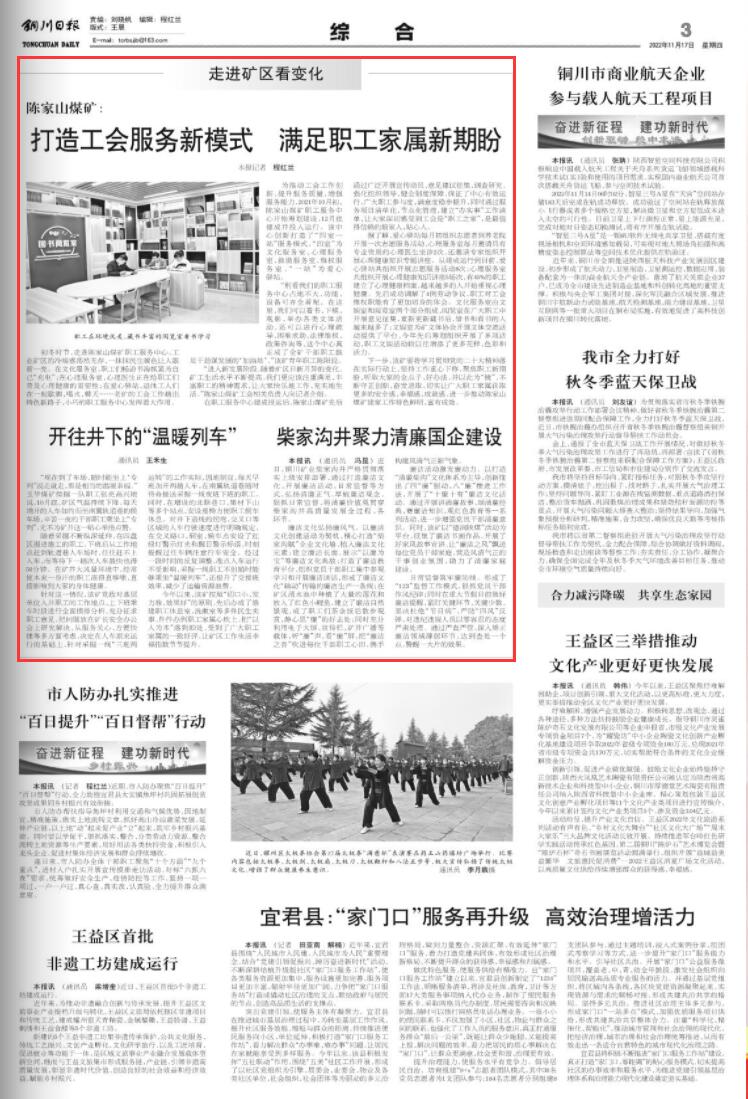 下一步,該礦要將學習貫徹黨的二十大精神落在實際行動上,堅持工作重心下移,聚焦職工新期盼,聽取大家的金點子、好辦法,并以此為“鏡”,不斷守正創(chuàng)新、奮發(fā)進取,切實讓廣大職工家屬獲取更多的安全感、幸福感、成就感,進一步推動陳家山煤礦建家工作特色鮮明、富有成效。