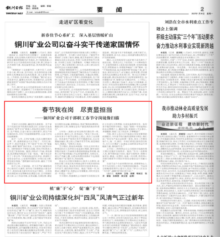 萬家燈火慶團(tuán)圓,闔家歡樂迎新春。當(dāng)千家萬戶沉浸在春節(jié)的喜慶氛圍之際,百里礦區(qū)各條戰(zhàn)線的“春節(jié)守崗”銅煤人卻依然忙碌在工作崗位、生產(chǎn)現(xiàn)場(chǎng),以舍小家為大家的堅(jiān)守,抓生產(chǎn)保電煤的擔(dān)當(dāng),用實(shí)干托起銅煤新夢(mèng)想,以?shī)^斗抒寫創(chuàng)業(yè)新畫卷。