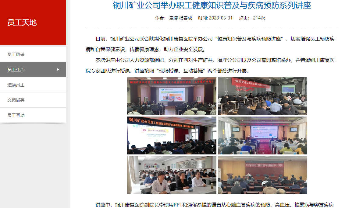 日前,銅川礦業(yè)公司聯(lián)合陜煤化銅川康復醫(yī)院舉辦公司“健康知識普及與疾病預防講座”,切實增強員工預防疾病和自我保健意識,傳播健康理念,助力企業(yè)安全發(fā)展。